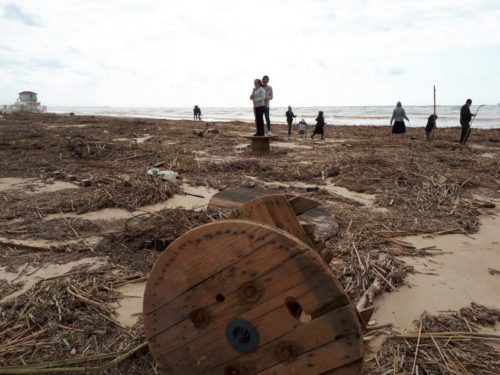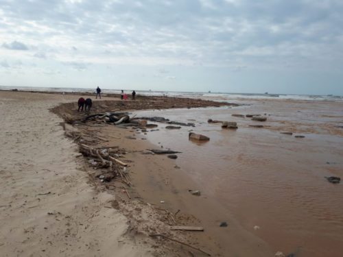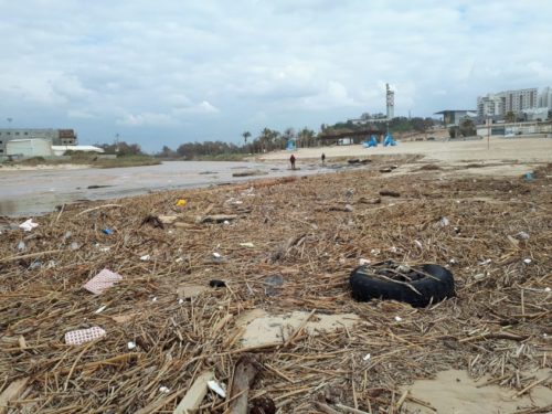 L’eau a balayé avec elle beaucoup de boue qui a coloré la mer, beaucoup de végétation, y compris de lourds troncs d’arbres, mais aussi de nombreux déchets provenant de surfaces urbaines et agricoles. Le résultat peut être vu sur les plages d’Ashdod, a l’embouchure où le ruisseau se déverse dans la mer. L’air sent le aigre, une odeur désagréable.