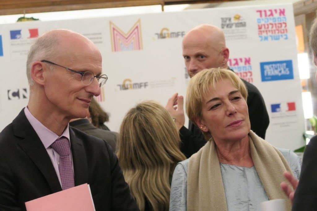 Etaient présents au lancement de la résidence d’écriture franco-israélienne en Israël : Laurence Herzberg, directrice du festival international Séries Mania qui se déroule chaque année à Lille, et Mathieu Fournet, directeur des affaires européennes et internationales du CNC.