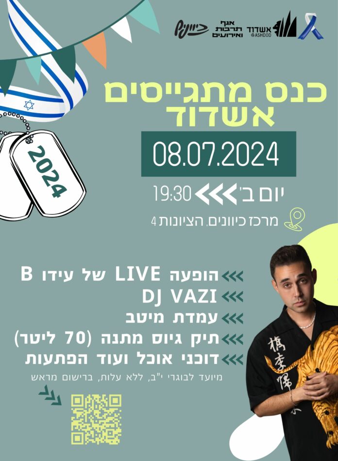 La municipalité d’Ashdod, le département des événements et de la culture et le centre Kivounim invitent les diplômés de la 12e année à la conférence annuelle des recrues qui se tiendra le lundi 7/8 à 19h30, dans la cour du centre Kivounim.