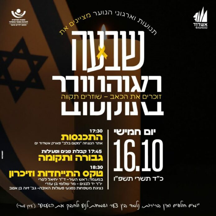 Deux ans après le drame du 7 octobre, Ashdod s’apprête à tenir sa cérémonie officielle de commémoration, ce 16 octobre 2025, à l’initiative des mouvements de jeunesse de la ville.