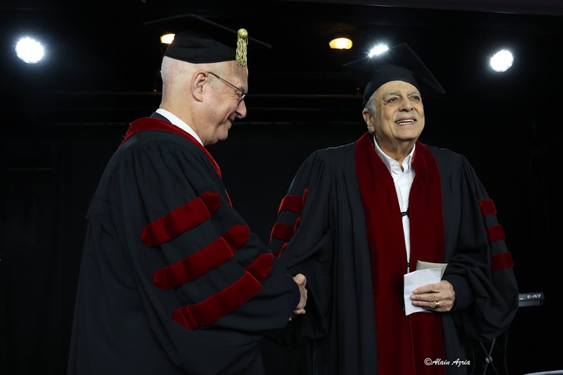 1. 2. 4. Le chanteur Enrico Macias et le Pro. Ariel Porat lors de la cérémonie de remise du diplôme de doctorat honoris causa