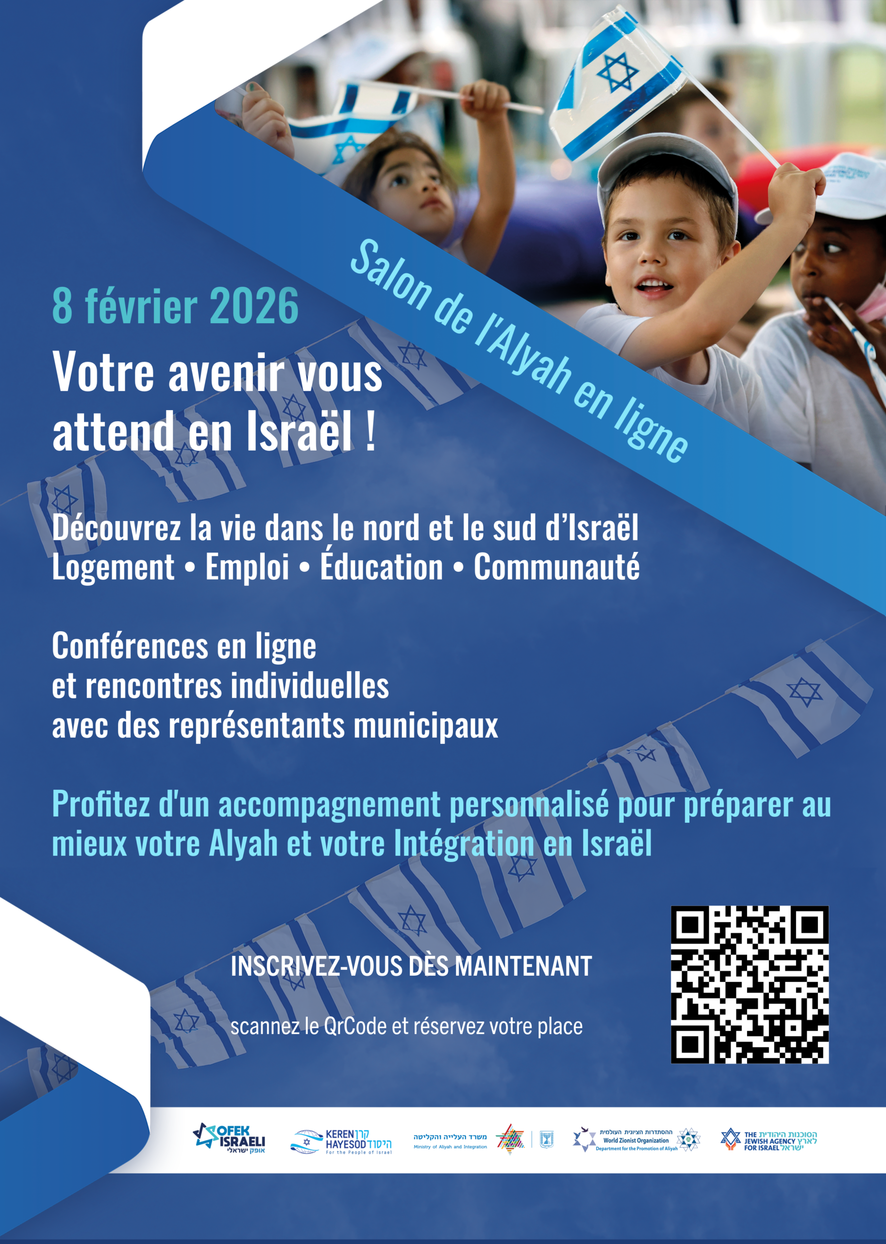 Le dimanche 8 février 2026, Dor Hadash vous donne rendez-vous pour le Salon de l’Alyah en ligne, un événement 100 % digital pensé pour vous permettre de découvrir, de manière concrète et personnalisée, les opportunités de vie et d’intégration en Israël.