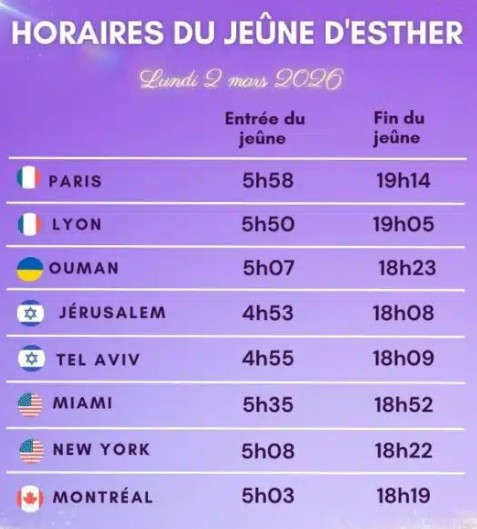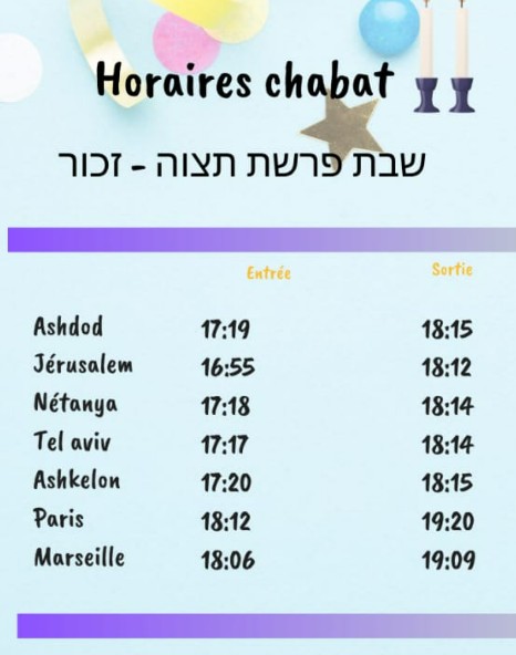 PARACHA TETSAVE 5786 – vendredi 27 février 2026 – Vendredi 10 Adar 5786