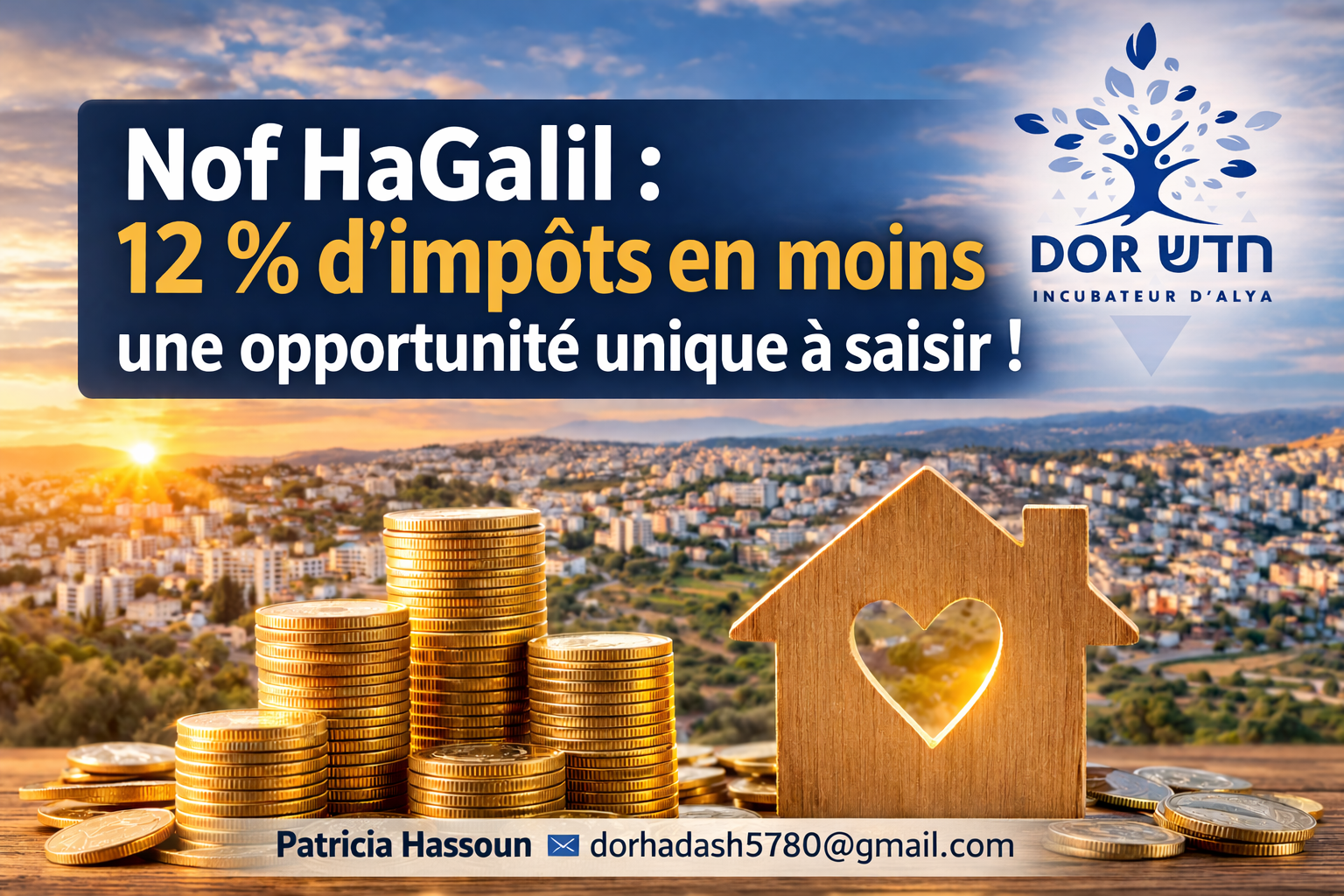 Tout résident vivant à Nof HaGalil depuis au moins 12 mois bénéficie d’un avantage fiscal de 12 % sur le revenu.