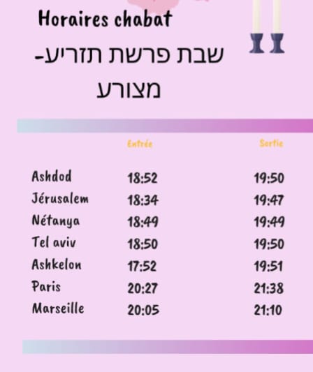 PARACHA TAZRIA METSORA 5786 – vendredi 17 avril 2026 – 30 Nissan 5786